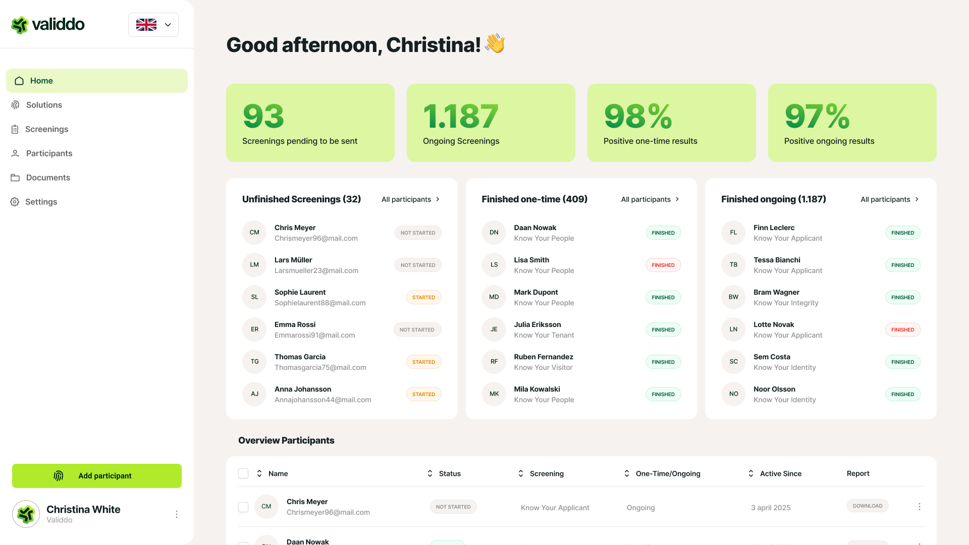 See how Validdo simplifies your global screening process from upload to results with ease and efficiency. Experience firsthand how our accessible, effective, and people-oriented screenings and identity checks set the standard for innovative security solutions. With Validdo, you protect your organization and build trust.